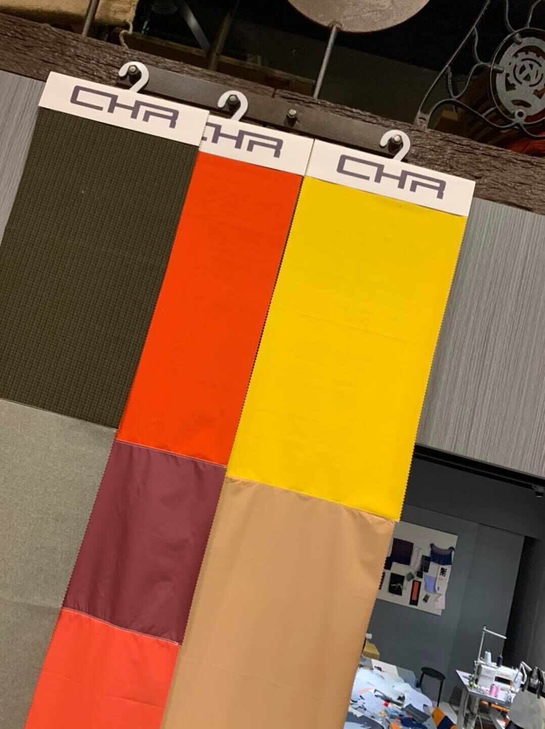 運用樣布卡進行拼接,將樣布轉化為牆面視覺裝飾,展示材料的創意可能性