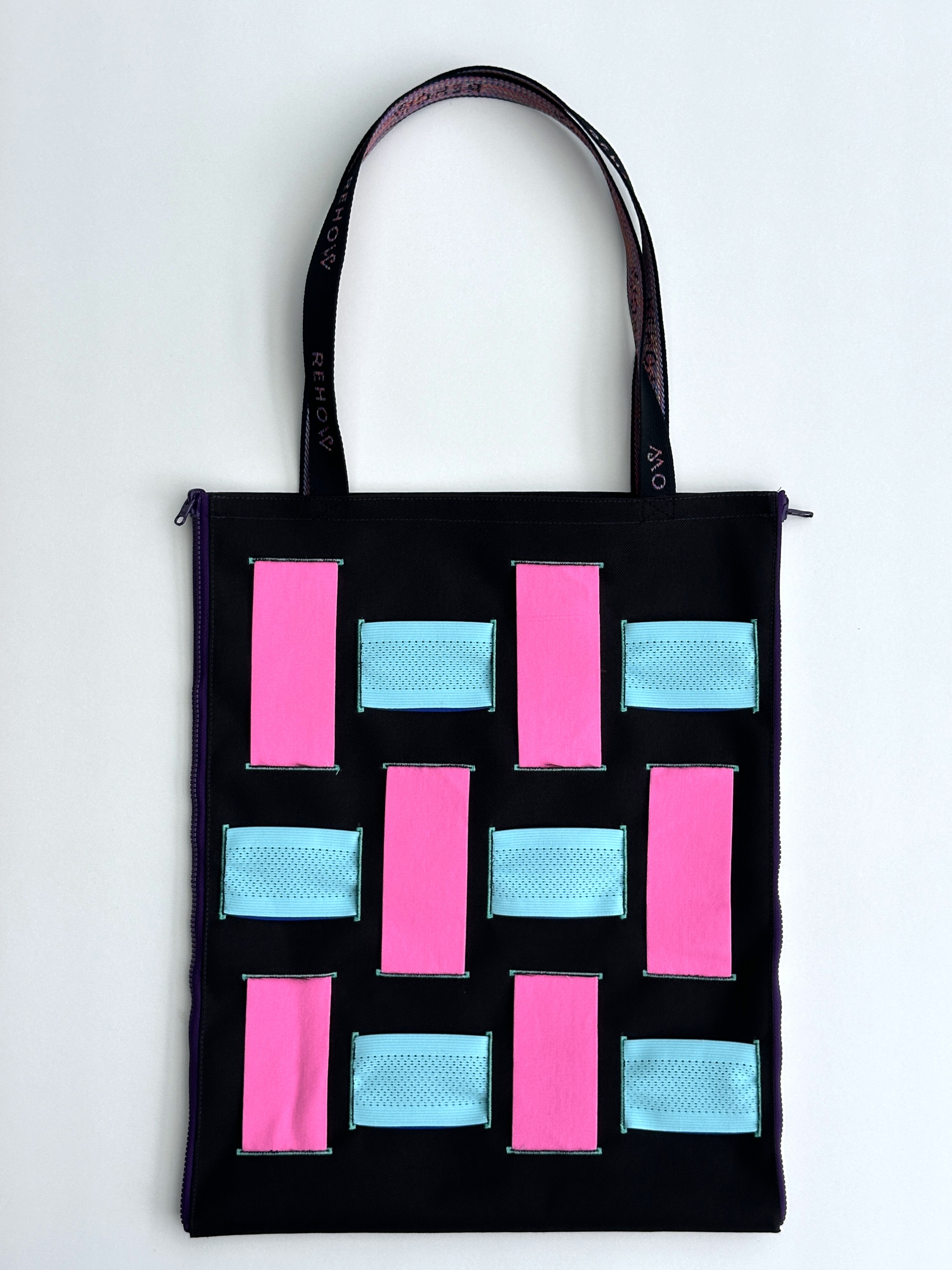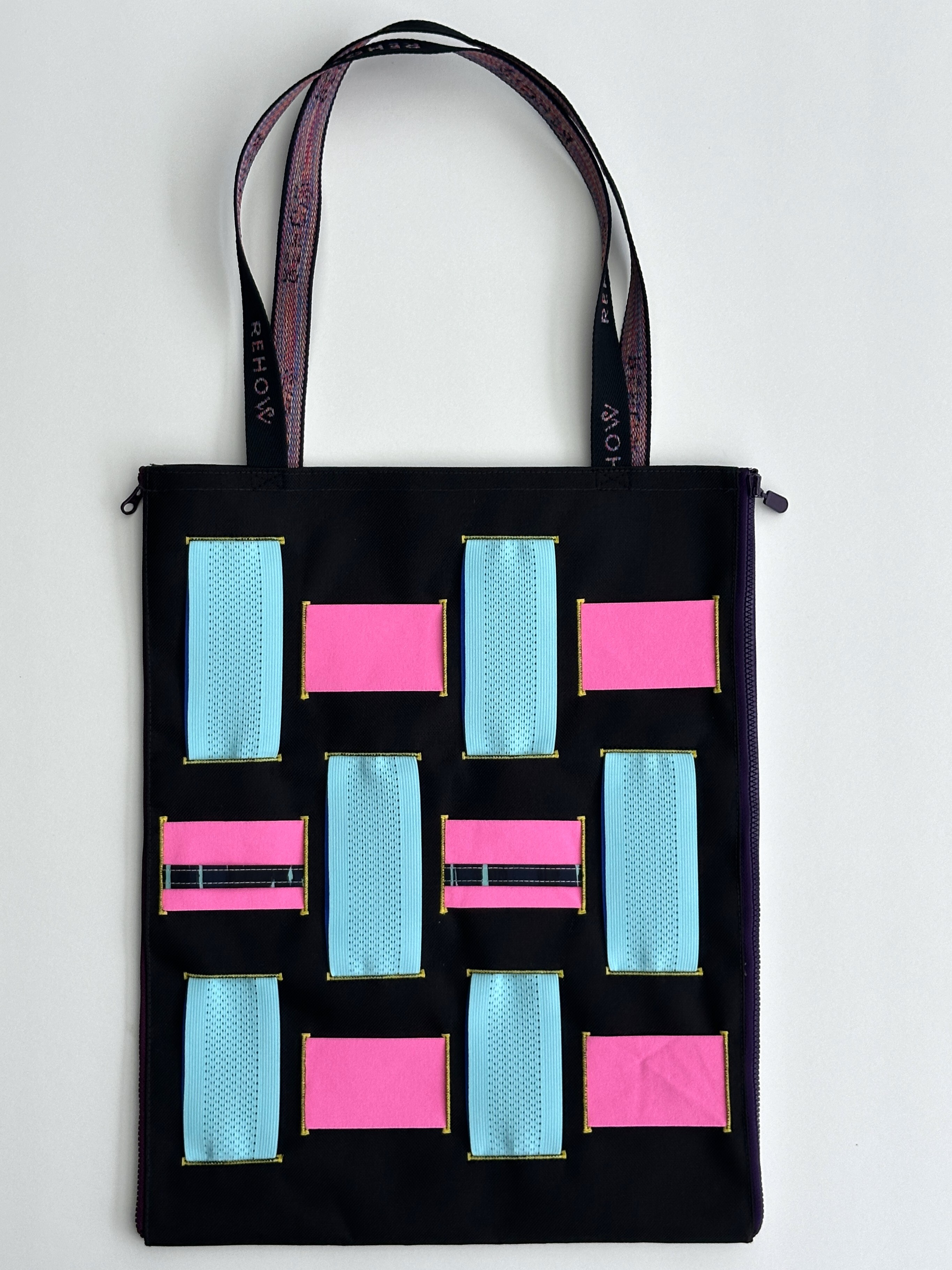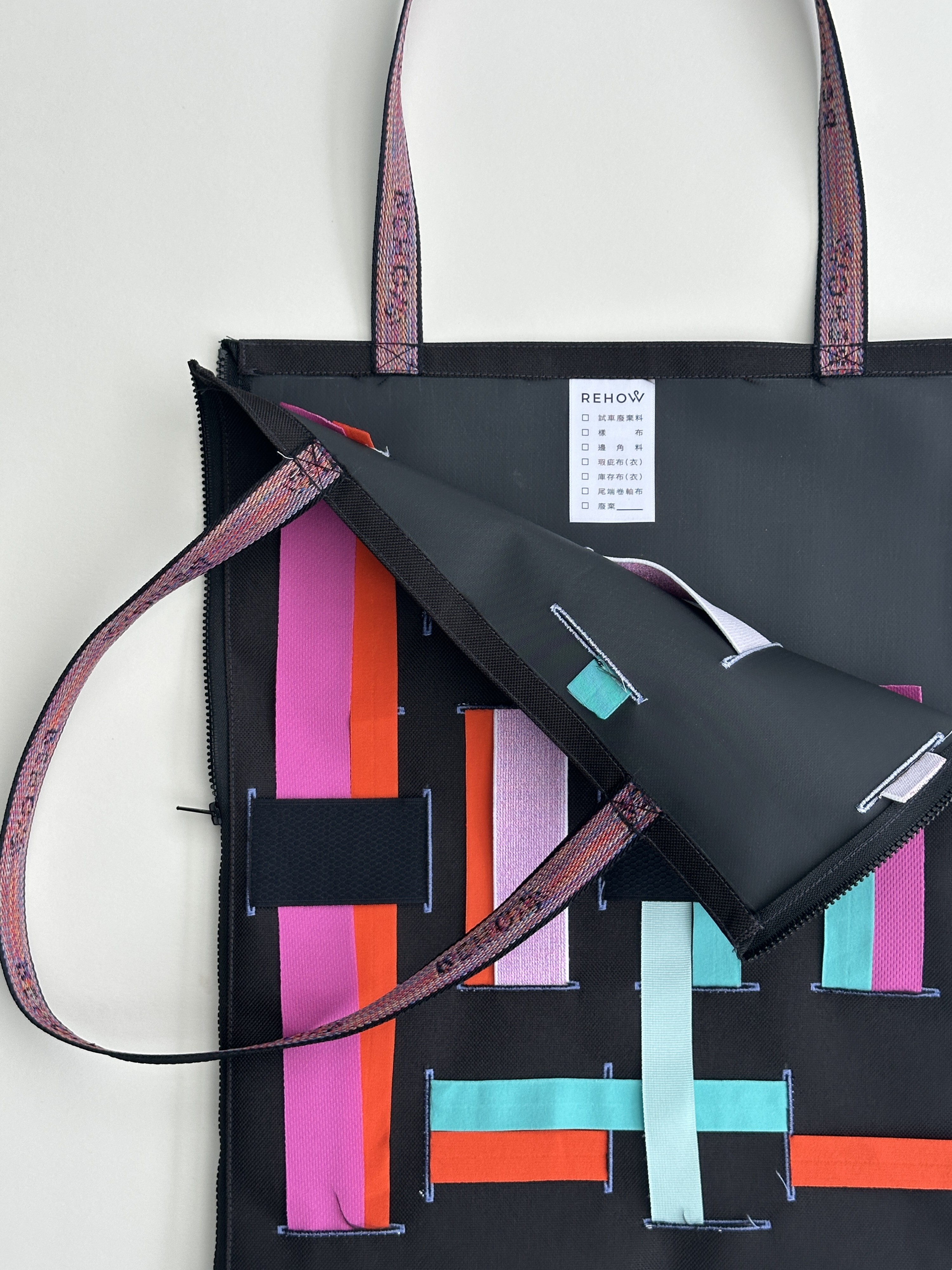 商品材質:牛津帆布 + 扣眼洞 +廢棄拉鍊 X REHOW彩色織帶