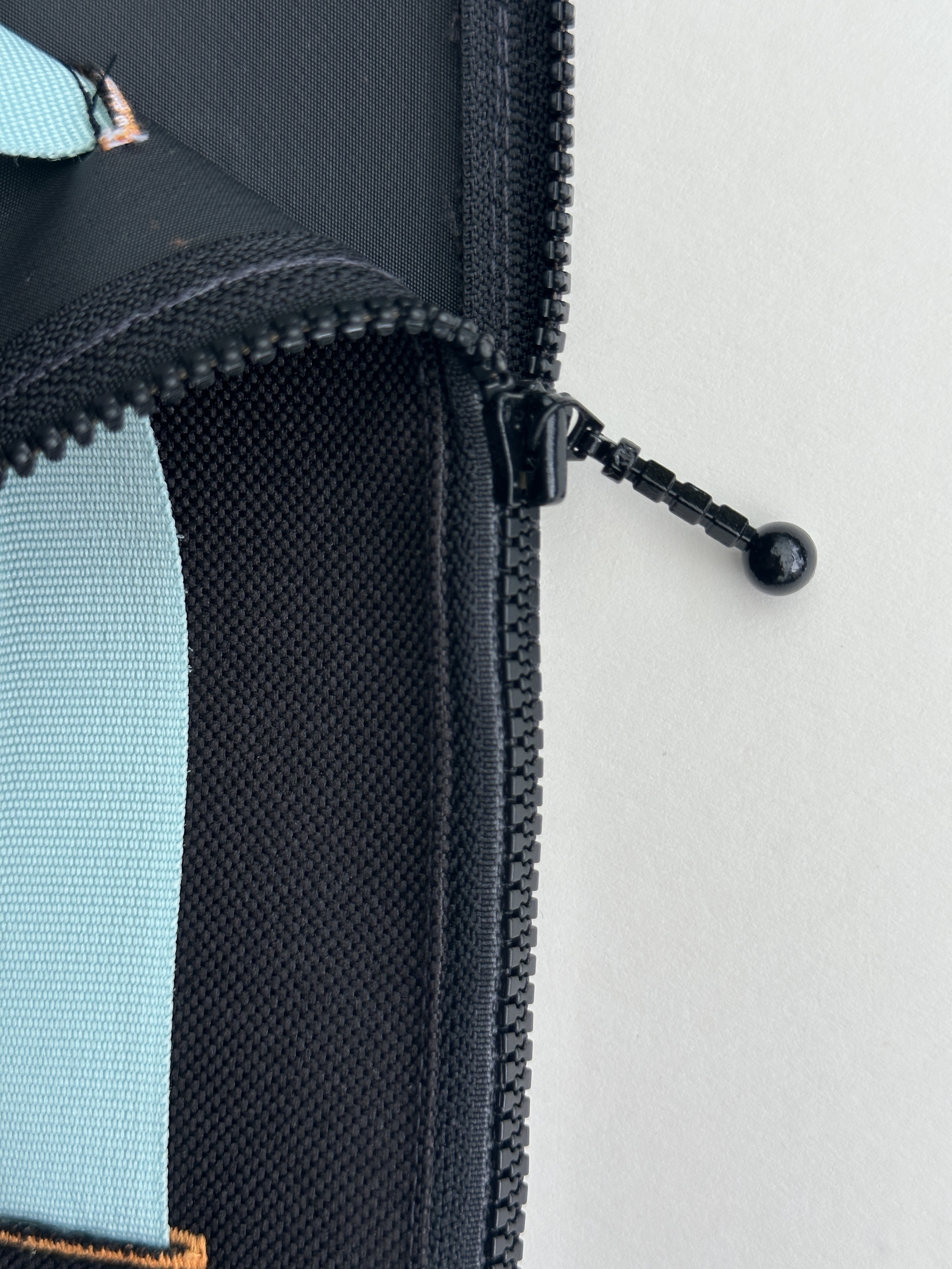 側邊加上廢棄拉鍊,作為造型點綴,也增加拿取物件的便利性。