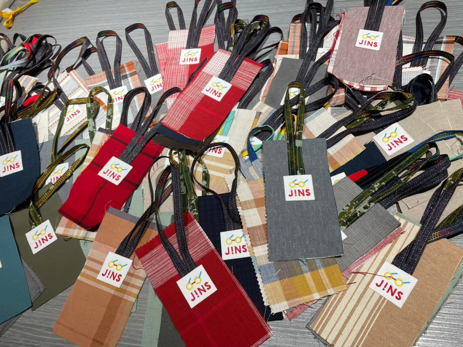 REHOW 為 JiNS 門市母親節檔期設計滿額禮贈品,運用品牌樣品布與褲耳條等廢棄材料,打造兼具實用性與設計感的再製眼鏡收納袋,讓永續概念自然融入日常配件。